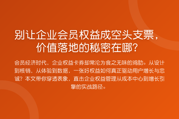 会员经济时代,企业权益卡券却常沦为食之无味的鸡肋。从设计到核销,从体验到数据,一张好权益如何真正驱动用户增长与忠诚?本文带你穿透表象,直击企业权益管理从成本中心到增长引擎的实战路径。