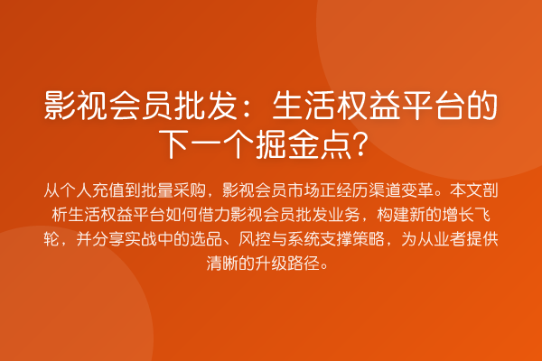 从个人充值到批量采购,影视会员市场正经历渠道变革。本文剖析生活权益平台如何借力影视会员批发业务,构建新的增长飞轮,并分享实战中的选品、风控与系统支撑策略,为从业者提供清晰的升级路径。