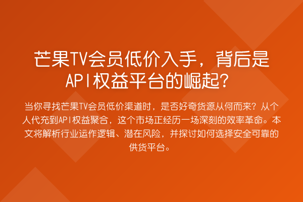 当你寻找芒果TV会员低价渠道时,是否好奇货源从何而来?从个人代充到API权益聚合,这个市场正经历一场深刻的效率革命。本文将解析行业运作逻辑、潜在风险,并探讨如何选择安全可靠的供货平台。