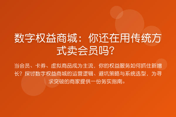 当会员、卡券、虚拟商品成为主流,你的权益服务如何抓住新增长?探讨数字权益商城的运营逻辑、避坑策略与系统选型,为寻求突破的商家提供一份务实指南。