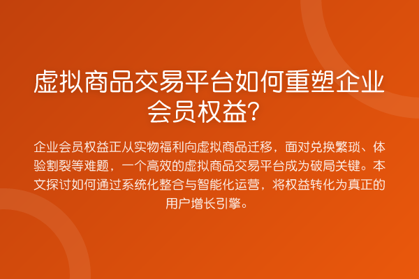 企业会员权益正从实物福利向虚拟商品迁移,面对兑换繁琐、体验割裂等难题,一个高效的虚拟商品交易平台成为破局关键。本文探讨如何通过系统化整合与智能化运营,将权益转化为真正的用户增长引擎。