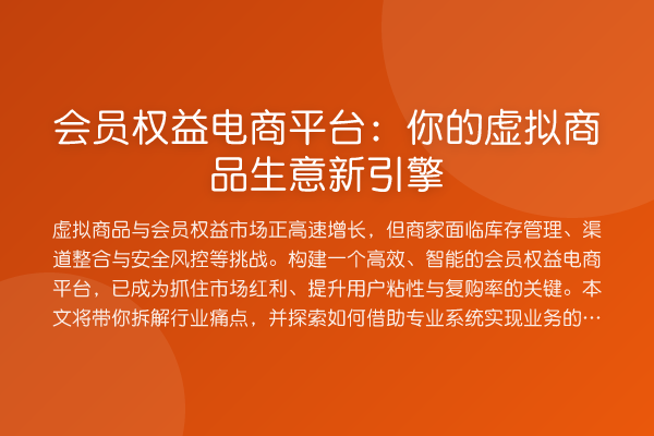 虚拟商品与会员权益市场正高速增长,但商家面临库存管理、渠道整合与安全风控等挑战。构建一个高效、智能的会员权益电商平台,已成为抓住市场红利、提升用户粘性与复购率的关键。本文将带你拆解行业痛点,并探索如何借助专业系统实现业务的数字化跃迁。