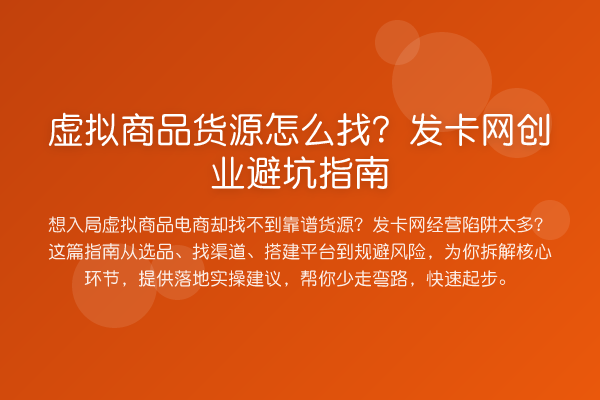 想入局虚拟商品电商却找不到靠谱货源?发卡网经营陷阱太多?这篇指南从选品、找渠道、搭建平台到规避风险,为你拆解核心环节,提供落地实操建议,帮你少走弯路,快速起步。