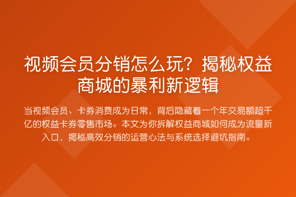 视频会员分销怎么玩?揭秘权益商城的暴利新逻辑