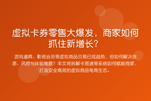 游戏道具、影视会员等虚拟商品交易已成趋势,但如何解决货源、风控与体验难题?本文将拆解卡易速等系统如何赋能商家,打造安全高效的虚拟商品电商生态。