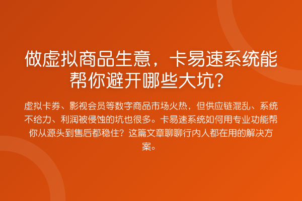 做虚拟商品生意,卡易速系统能帮你避开哪些大坑?
