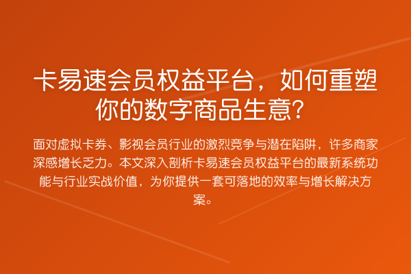 卡易速会员权益平台,如何重塑你的数字商品生意?