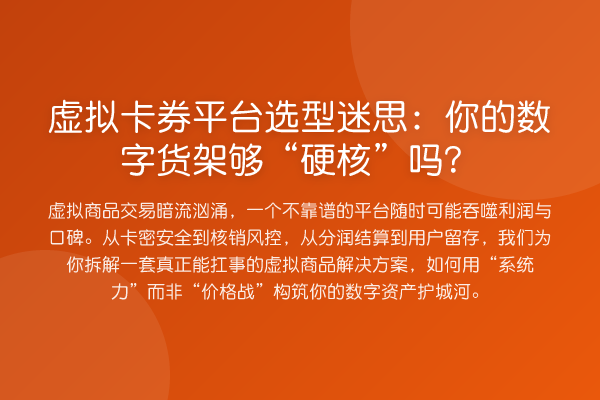 虚拟卡券平台选型迷思:你的数字货架够“硬核”吗?